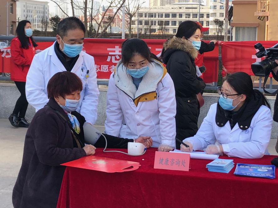 當(dāng)天,豐源居小區(qū)志愿者協(xié)同醫(yī)院職工和第一時間志愿者為不返鄉(xiāng)居民免費(fèi)理發(fā)、寫春聯(lián),并為居民提供了眼科、心內(nèi)科、甲乳科、彩超等免費(fèi)檢查。豐源居小區(qū)活動廣場上,數(shù)名書法愛好者忙得不亦樂乎,揮毫潑墨,書寫春聯(lián);十余名志愿者幫忙整理對子,把書寫好的春聯(lián)一字排開,晾干后裝進(jìn)禮袋送給居民;4名理發(fā)師志愿者為老年人理發(fā);醫(yī)院人員為老年人測血壓問診,現(xiàn)場氣氛其樂融融。